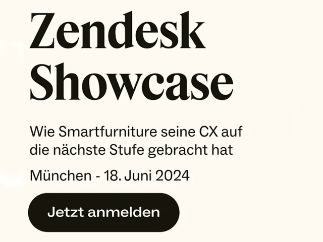 Wir bringen mit Zendesk die CX Welt nach München - Sie suchen CX-Expertise und anspruchsvollen Austausch? Dann sind Sie bei Zendesk Showcase genau richtig. Sie finden uns dort mit einem eigenen Stand sowie in einer Deep Dive Session mit unserem Kunden smartfurniture. Zusammen geben wir Einblicke in das „Next Level“ Projekt von smartfurniture.