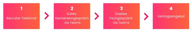 Wir wissen genau, dass Jobinterviews oft stressig und herausfordernd sind. Deswegen haben wir unseren Einstellungsprozess so einfach und transparent wie möglich gestaltet, damit Du weißt worauf Du Dich einlässt und Du bestens vorbereitet sein kannst.